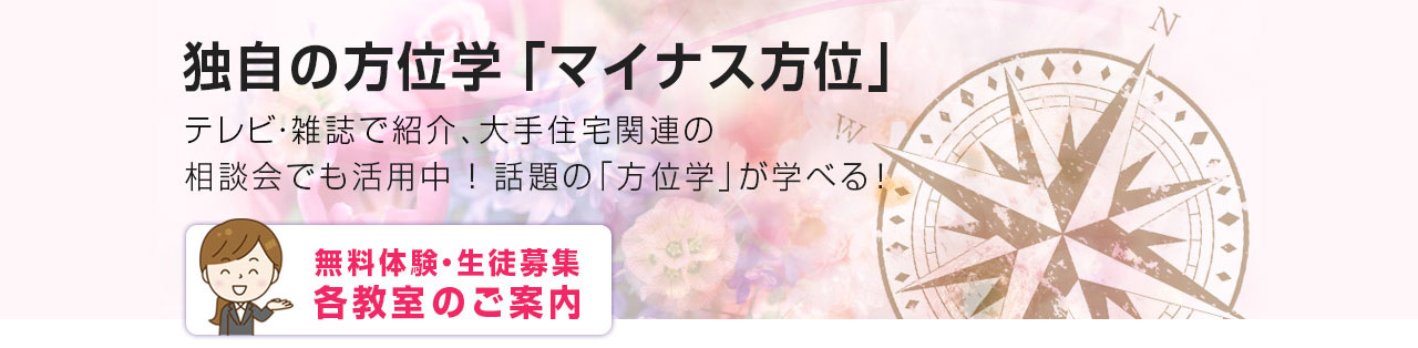 「マイナス方位」は自分にとって同調しにくい磁気流の流れている場所を指し、各人の生年月日から導き出される一生変わらない方位。